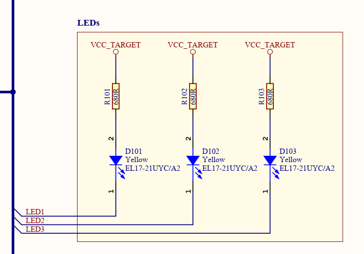 XproについているSW0とOLED1についているBUTTON 1-3をそれぞれ押したら対応するLEDが点灯するテストをしよう、と思って準備をしているとSW0が接続されているPA15はLED3とも接続されていた。試しに上記のコードを動作させながらSW0を押してみるとLED3が点灯しっぱなしになった。なのでSW0はなかったことにして、BUTTON 1-3のテストだけを行う。まずは回路図を確認。