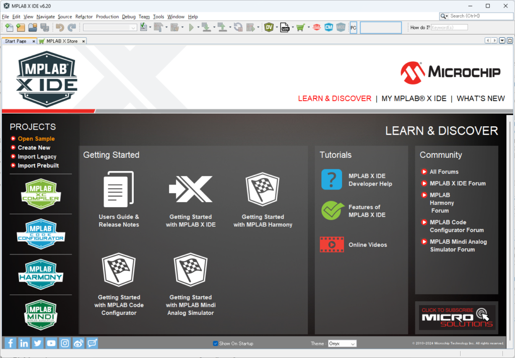 MPLABを開いてみた。初めてなのでOpen Sampleを実行してみよう。ちなみにUsers Guideは ここ にあった。