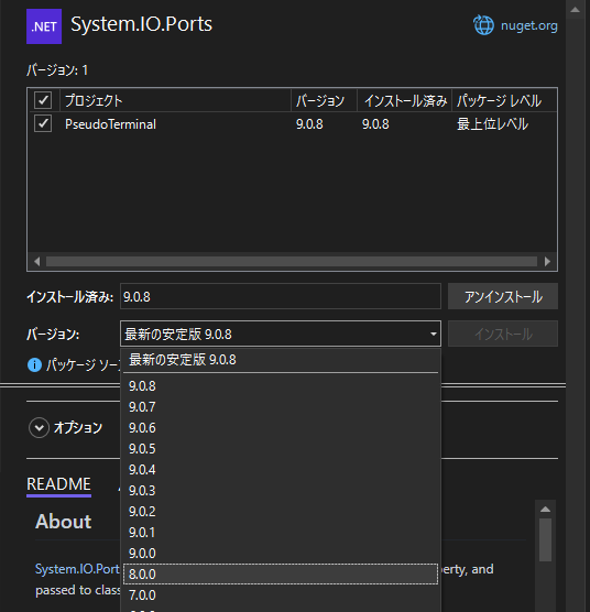 Visual Studio 2022でC#のWindows Formアプリを作成し、System.IO.PortsをNuGetでインストールしたところ、エラーが現れた。NuGetでインストールするときにバージョンを指定するとエラーを防ぐことができた。