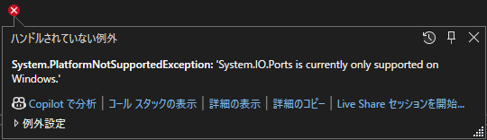 System.IO.PortsがCurrently only supported on Windowsエラー