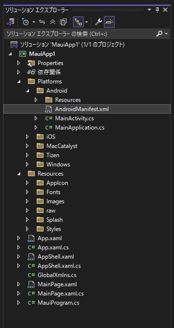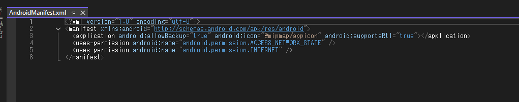 ソリューションエクスプローラでAndroidManifest.xmlをダブルクリックすると、AndroidManifestエディターが起動する。